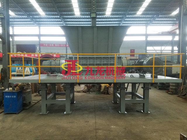 該設(shè)備是由兩組動(dòng)刀組合而成。每一組由數(shù)個(gè)到數(shù)十個(gè)數(shù)量不等的動(dòng)刀,通過一個(gè)回轉(zhuǎn)軸串裝而成,兩個(gè)回轉(zhuǎn)軸受驅(qū)動(dòng)裝置作用,按相應(yīng)速度正向或逆向回轉(zhuǎn)運(yùn)動(dòng),投入的物料,借運(yùn)行的動(dòng)刀刃間的剪刀力作用破碎。