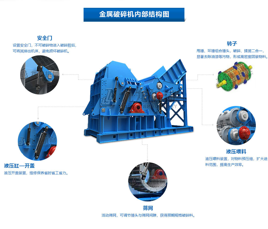3、金屬破碎機具有破碎成品效率高、出料粒度小等優(yōu)點;